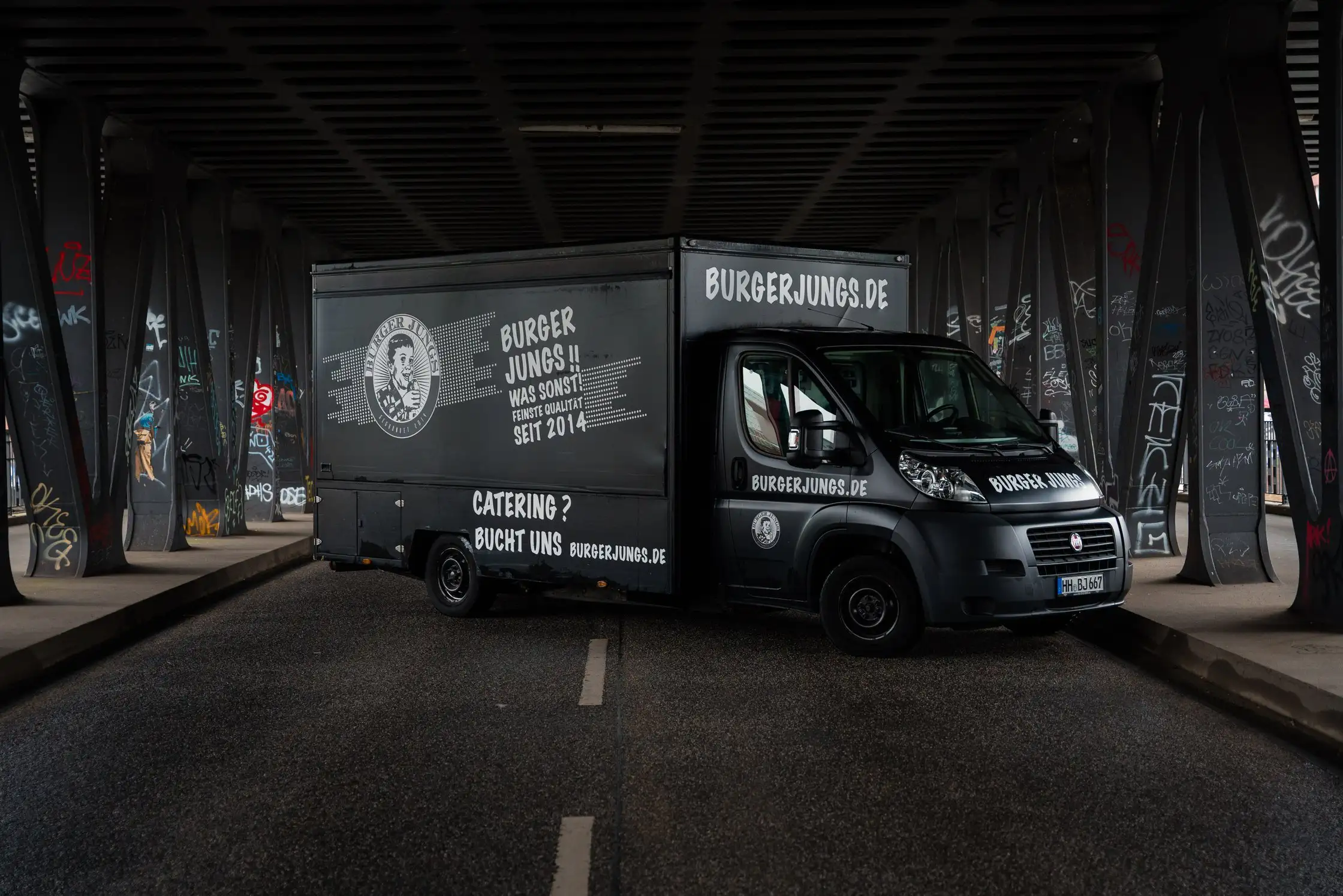 100% feinstes regionales Rindfleisch, frische Tomaten, Schalotten, knackfrischer Salat, hausgemachte Burger Jungs Trüffel-Soße, handgerollte Brioche-Brötchen